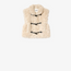 Ärmellose Weste aus Kunstpelz mit Bouclé-HaptikUmgeschlagener StehkragenBreite SchulterpartieSeitliche LeistentaschenVerschluss mit kontrastierenden KnebelknöpfenGerader Schnitt